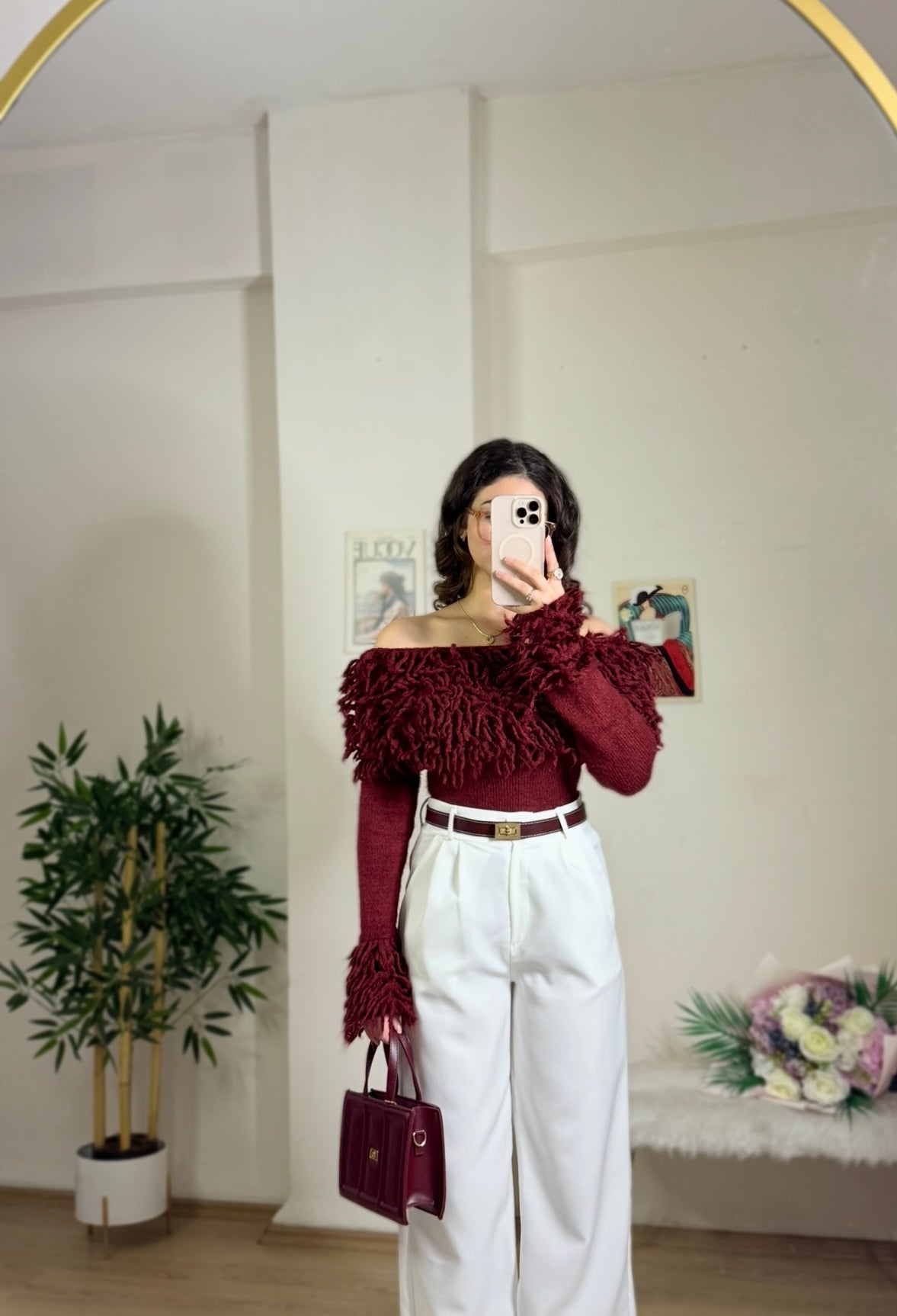 Madonna yaka detayı ve püskül dokusuyla feminen ve zarif bir görünüm sunar. Yumuşak yapısı sayesinde gün boyu konforludur. Hem şık kombinlerde hem de günlük kullanıma uygundur.
